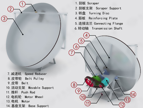 圓盤造粒機(jī)又稱成球盤,是由大盤、大齒輪、傳動部分、機(jī)架、底座、刮刀架、無動力刮刀等組成,圓盤造粒機(jī)具有造粒均勻、運轉(zhuǎn)平穩(wěn)、設(shè)備堅固耐用等優(yōu)點。