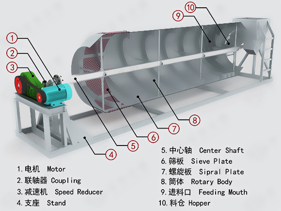 筒式洗礦機是由筒體、聯(lián)軸器、篩板、螺旋版、料倉等部分組成,廣泛用于各種難洗的大塊礦石,分為圓筒型和圓筒加篩條型兩種。